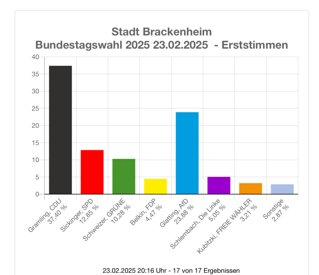 Besonders danken wir unseren Wähler*innen in Brackenheim, Cleebronn und dem Oberen Zabergäu – dort konnten wir trotz starker Konkurrenz stabile Ergebnisse erzielen. Das motiviert uns, auch in Zukunft mit klarer Haltung, konstruktiver Arbeit und Herzblut Politik vor Ort mitzugestalten.